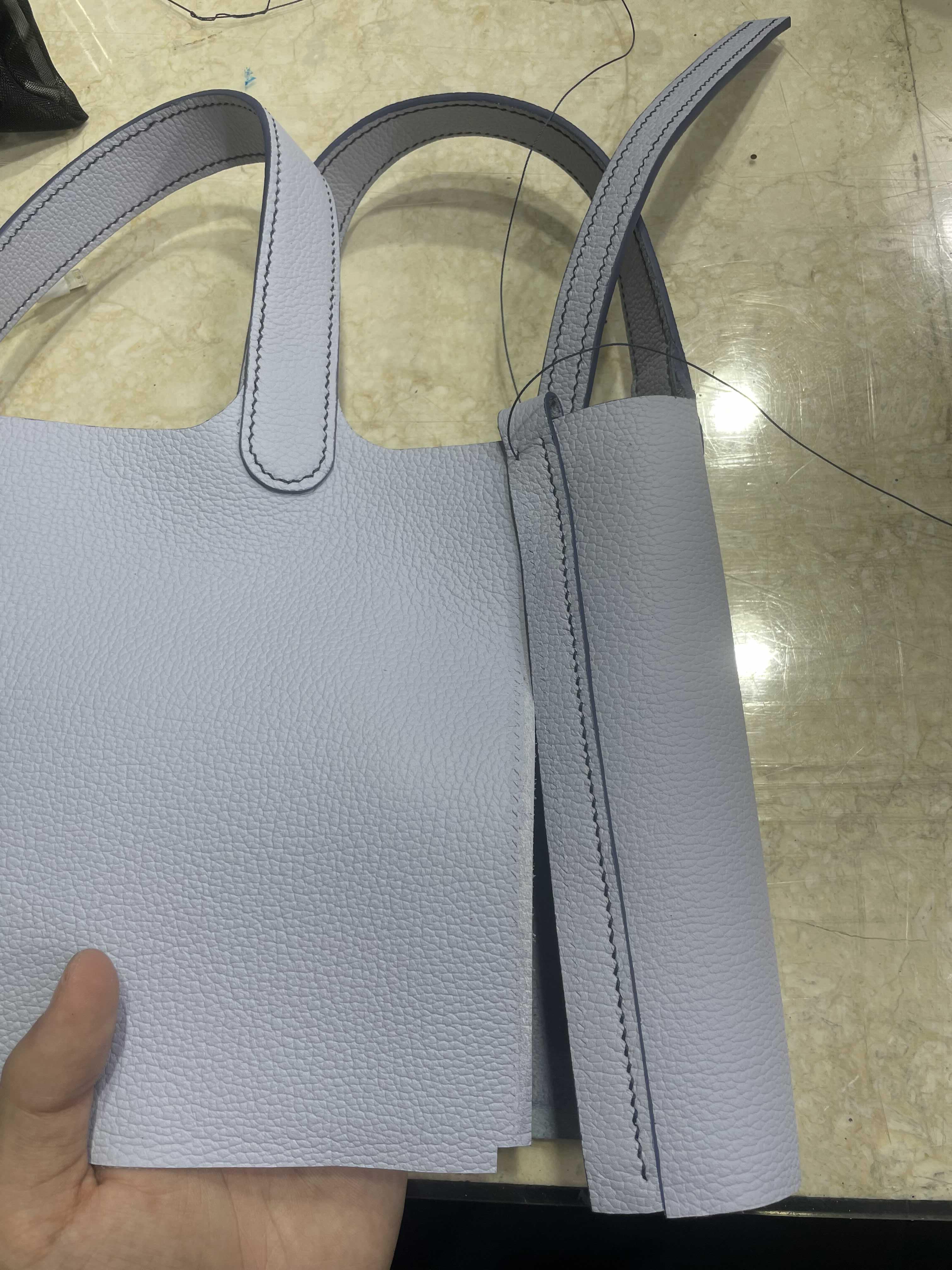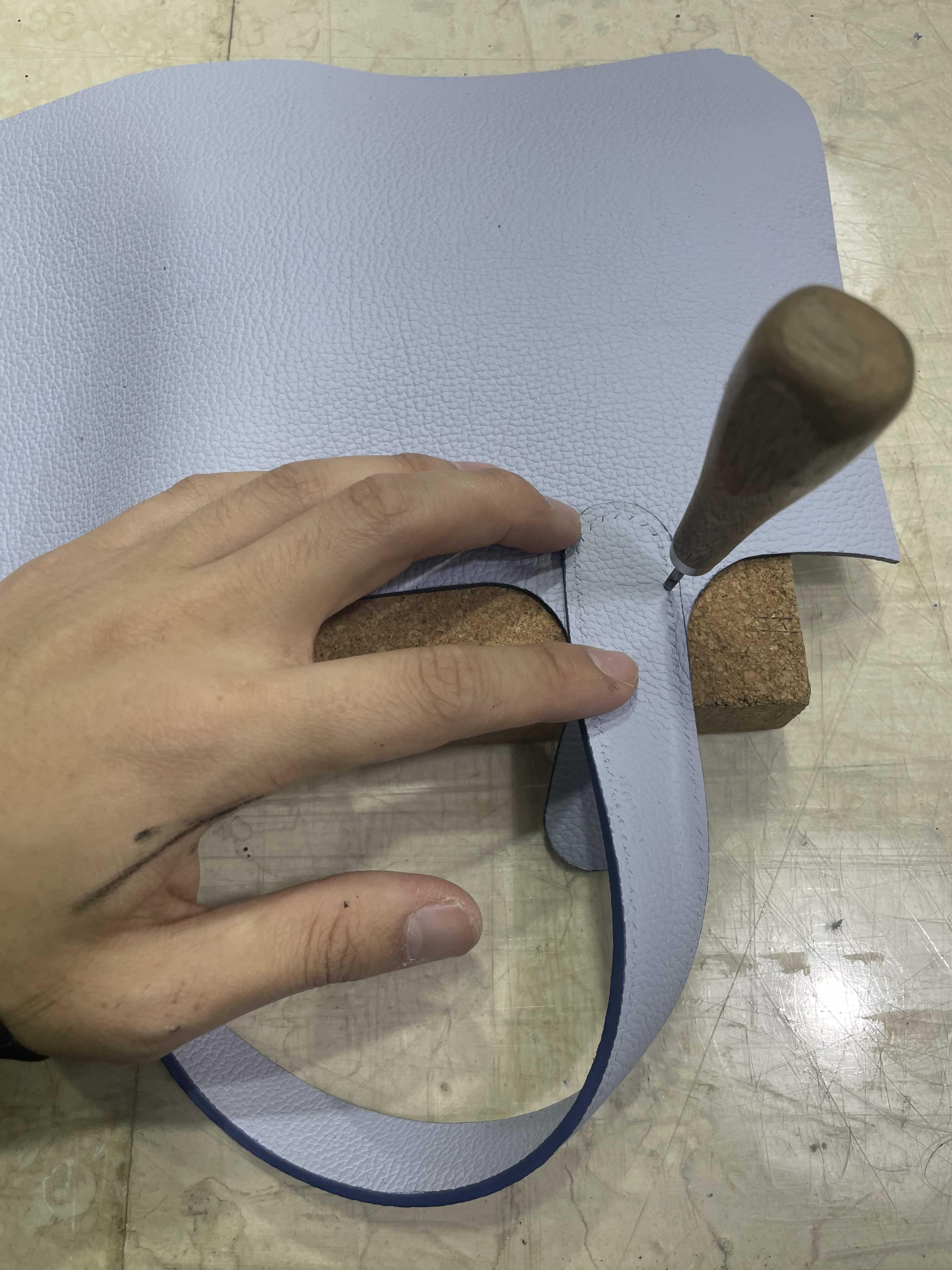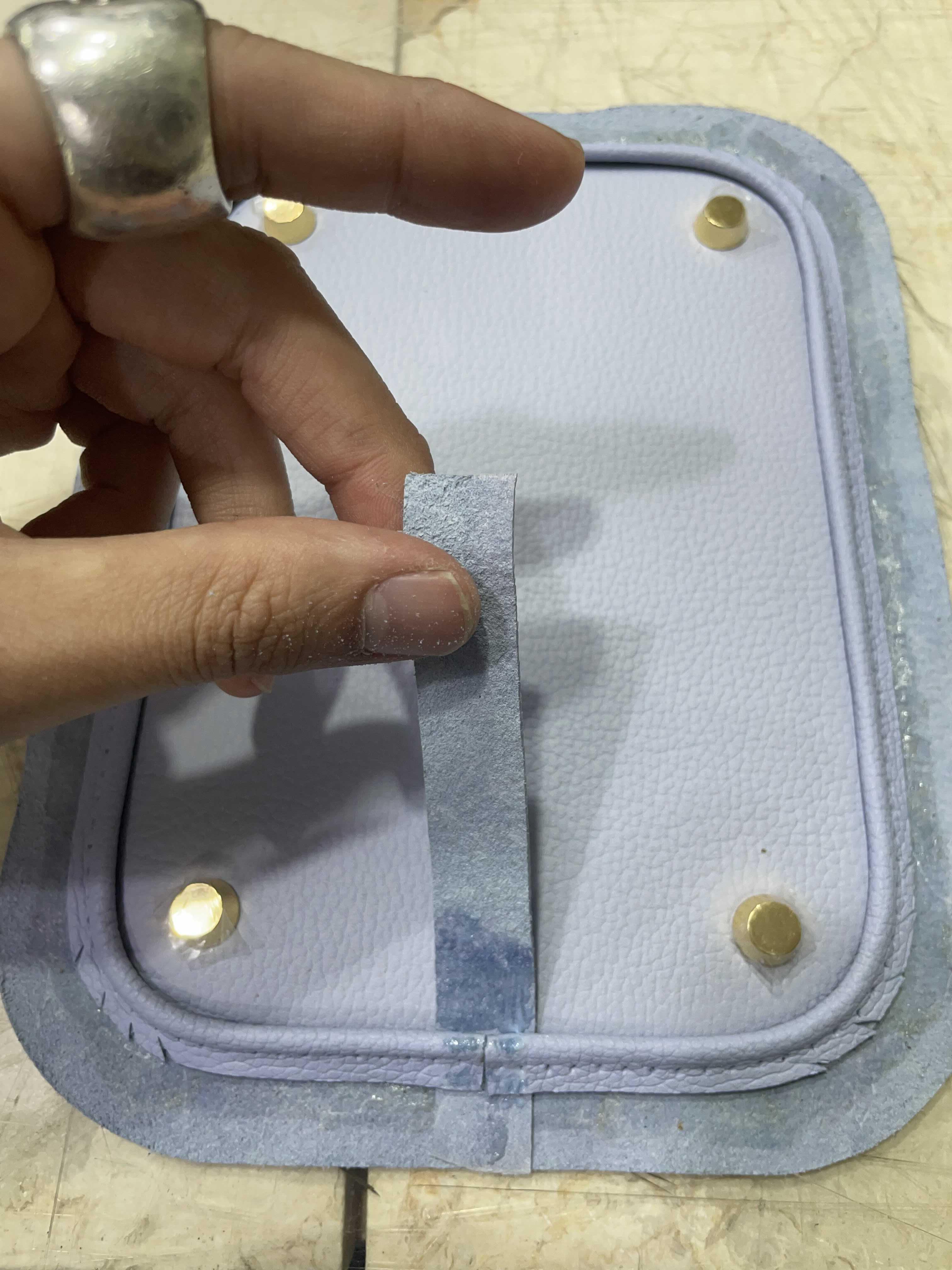 안쪽면 부분도 바늘구멍 위치 체크하면서 잘 접착. 전체 새들스티치~