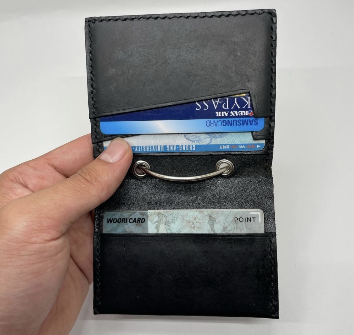 몇주동안 실사용 후 느낀점은.. 접어서 스티치한 부분이 카드를 잡아주질 못해서 계속 흘러서 떨굼..